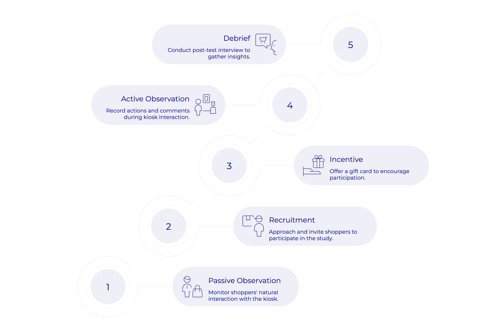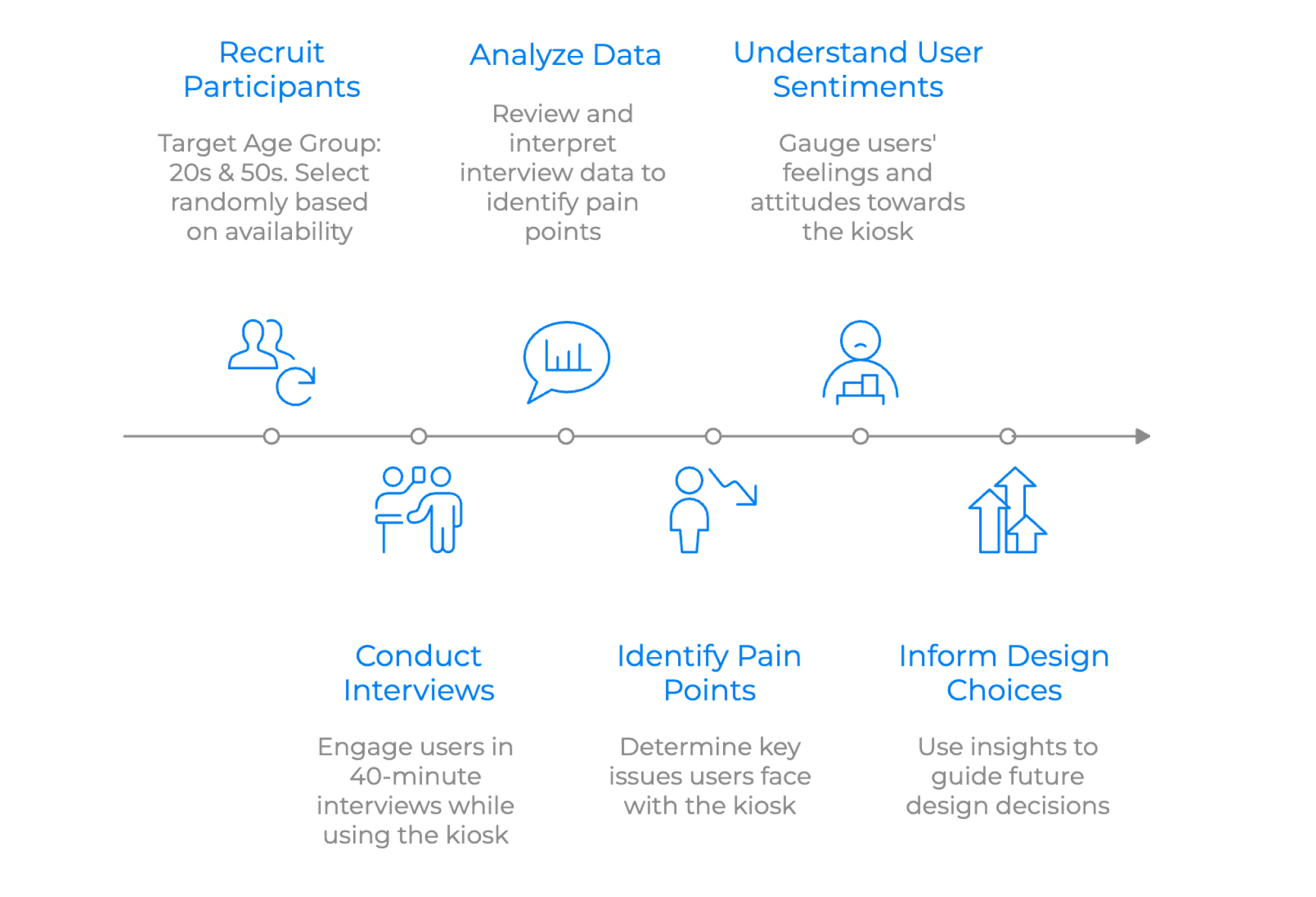 To gain a deeper perspective of how users interact with these kiosks we observed users interacting with the kiosk at select Walmarts. We developed a semi structured protocol for these sessions and asked users a some questions after their sessions.